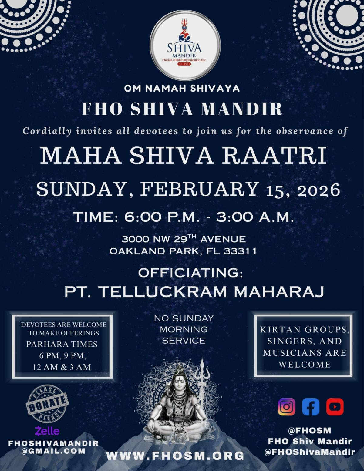 Everyone is invited to celebrate this auspicious occasion of Maha Shiv Raatri